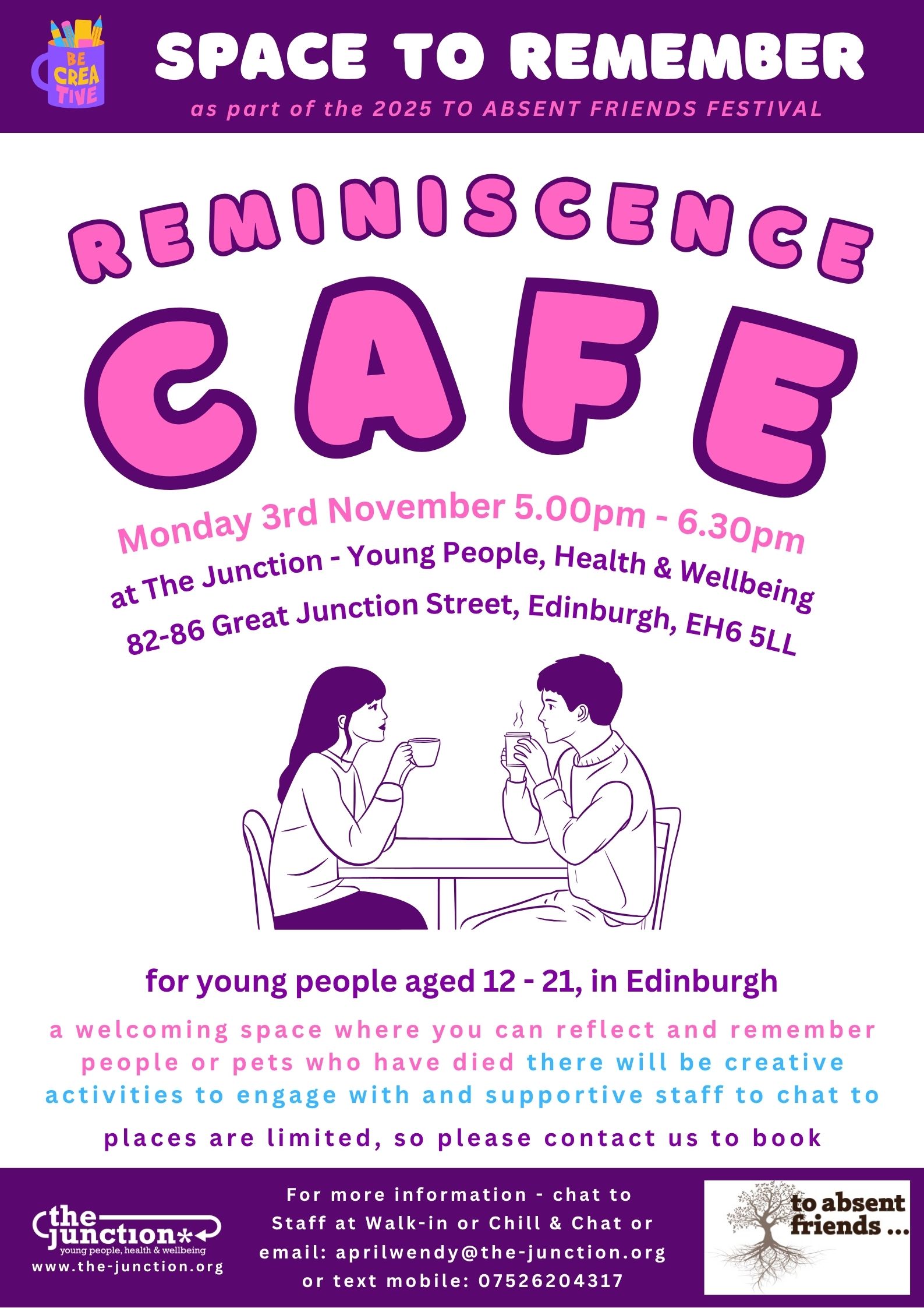 “Space To Remember” an event we ran as part of the To Absent Friends Festival, where young people could reflect on the loss of someone who had died